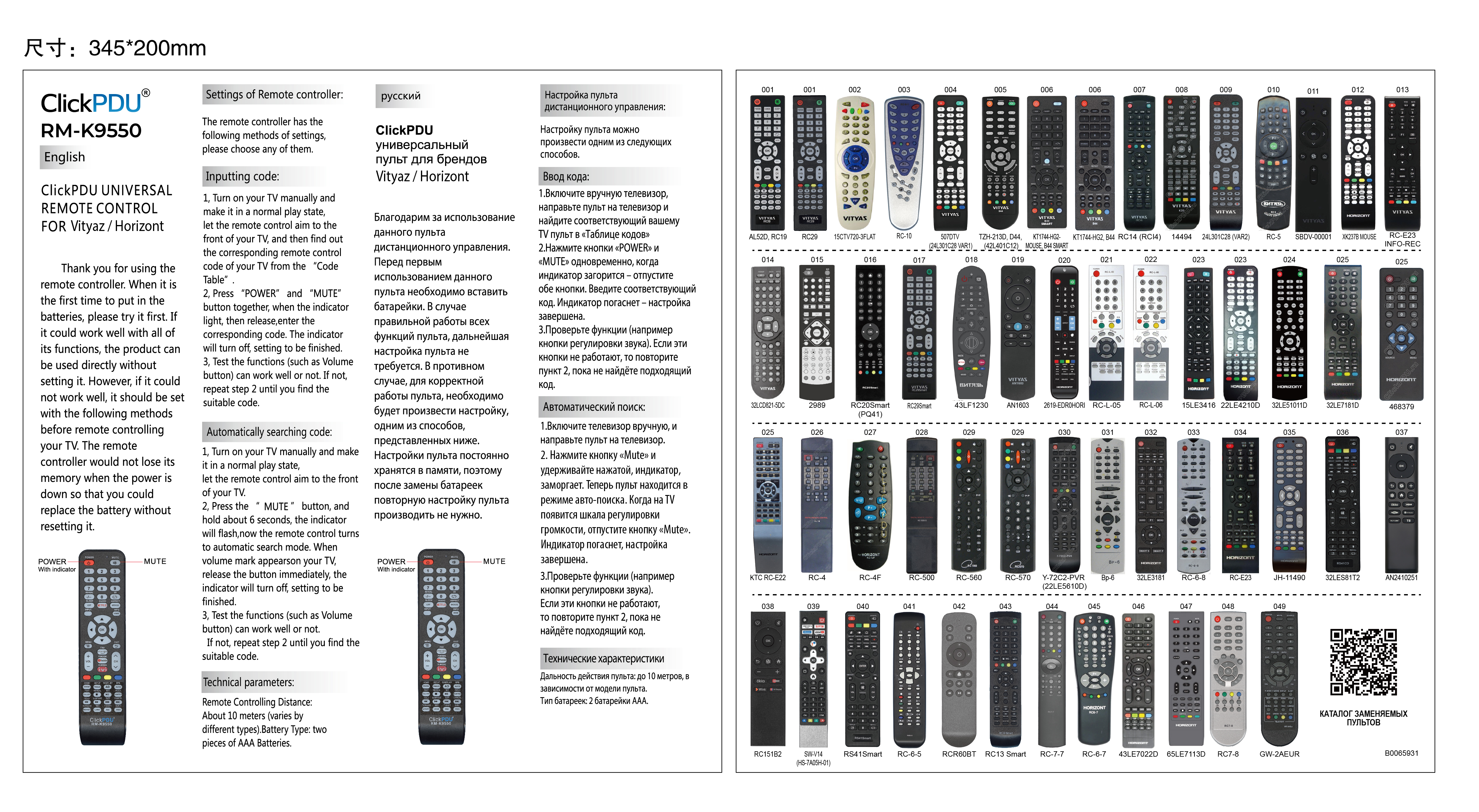 Пульт ДУ ВИТЯЗЬ, ГОРИЗОНТ RM-K9550 (Инструкция)Пульт ДУ ПОЛАР RM-L1153 в коробке (Инструкция)